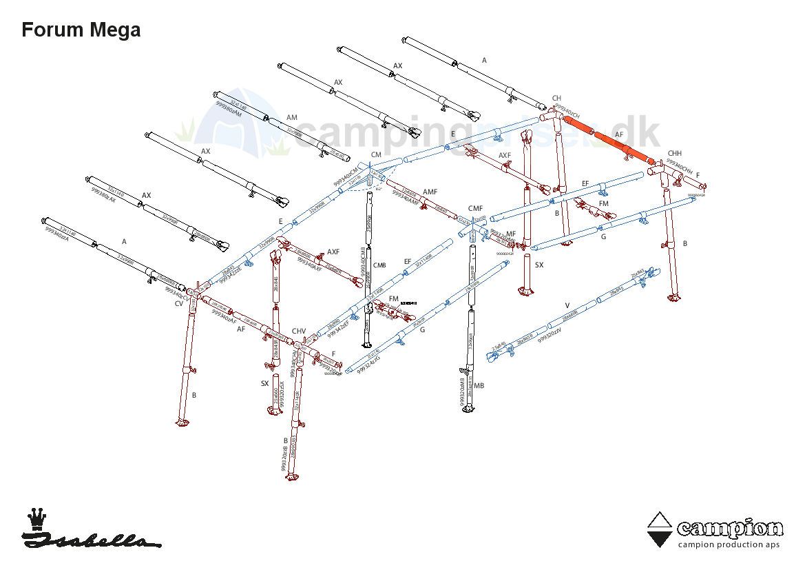Yderste tagstang kort til Forum i Mega  stel - AF stang