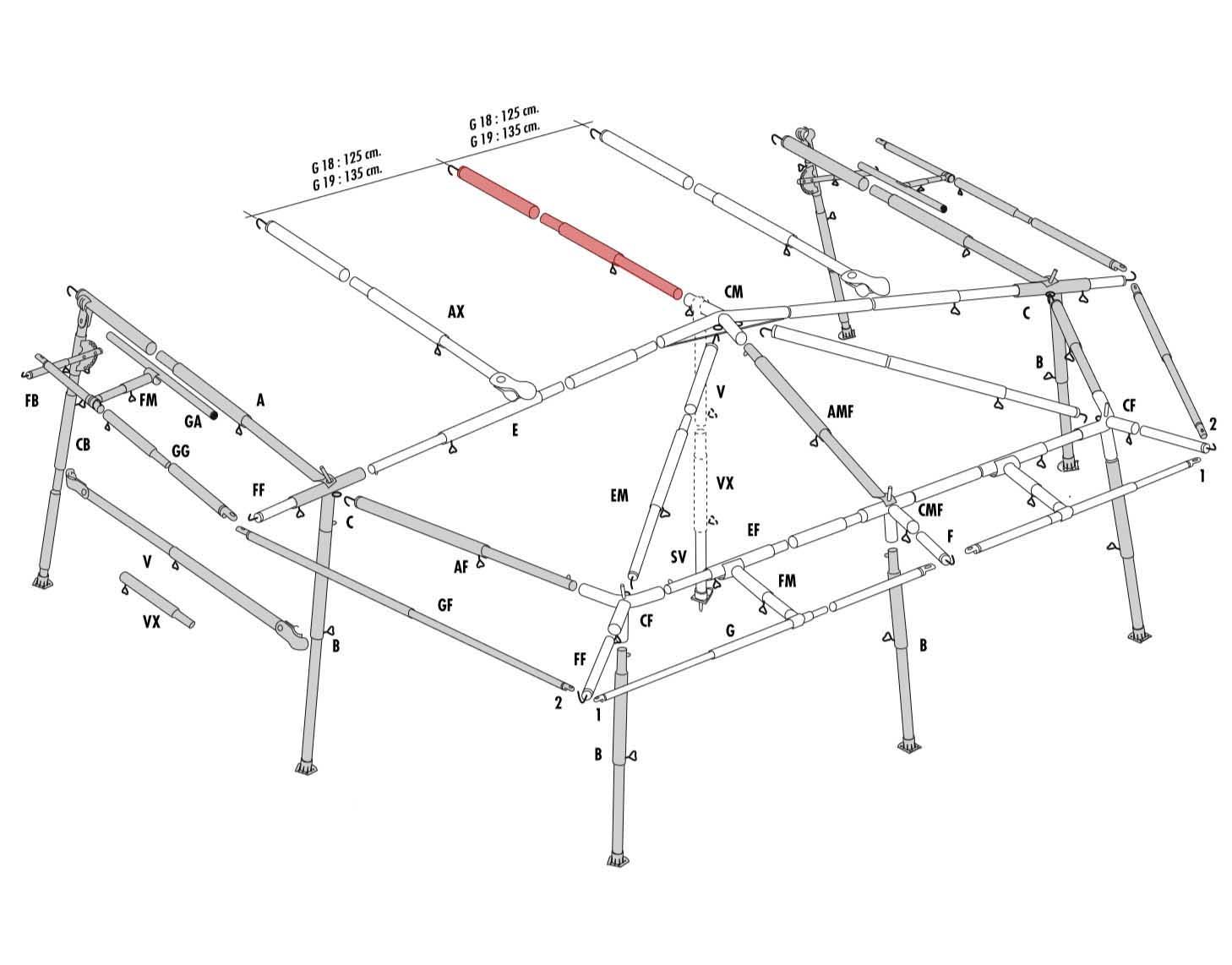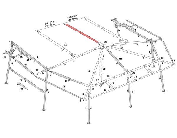 Isabella AM-stang er den midterste stang i taget som forbindes med tagkrydset til Isabella Penta og Magnum - zinox
