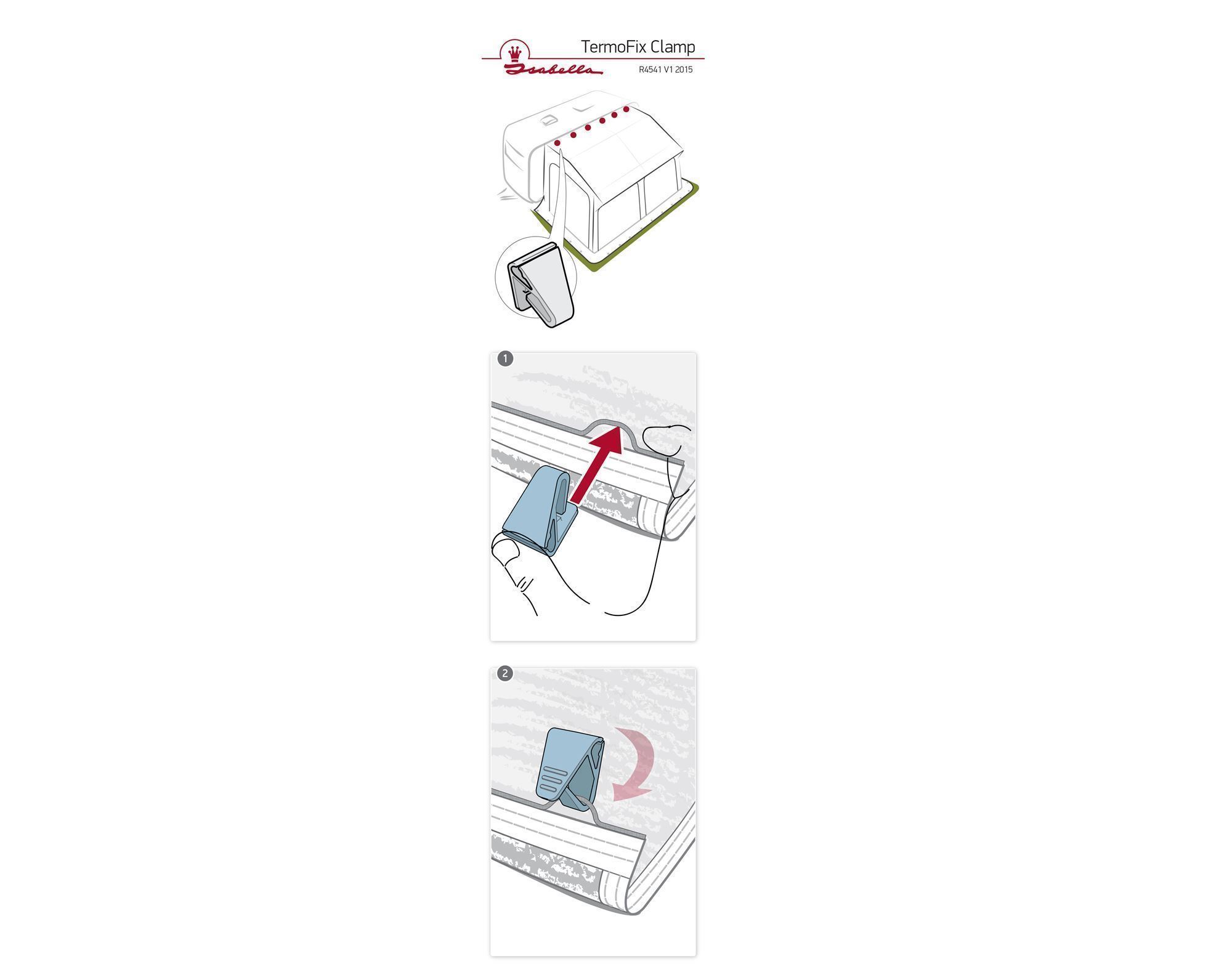 Termofix-holderne skubbes ind på vulsten mellem teltets FixOn-beslag.