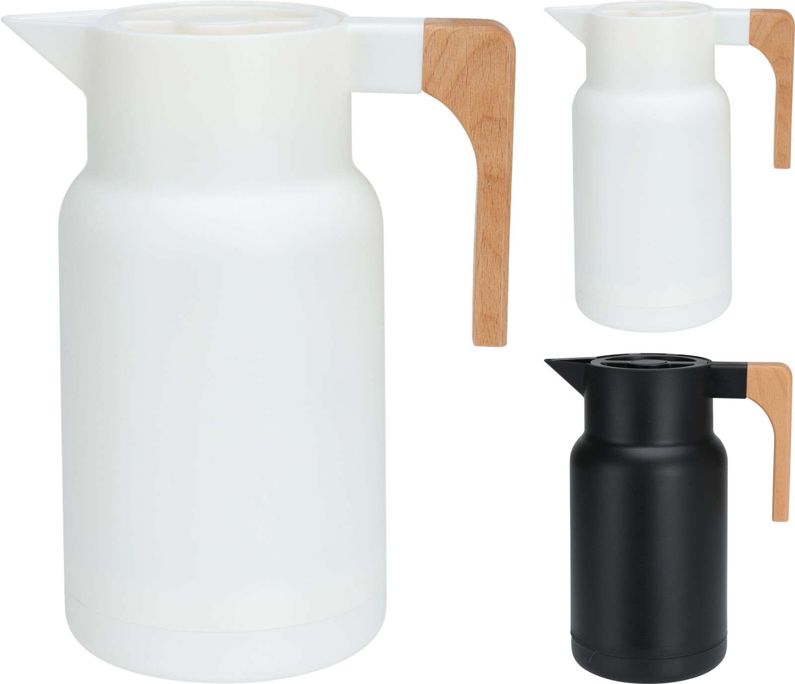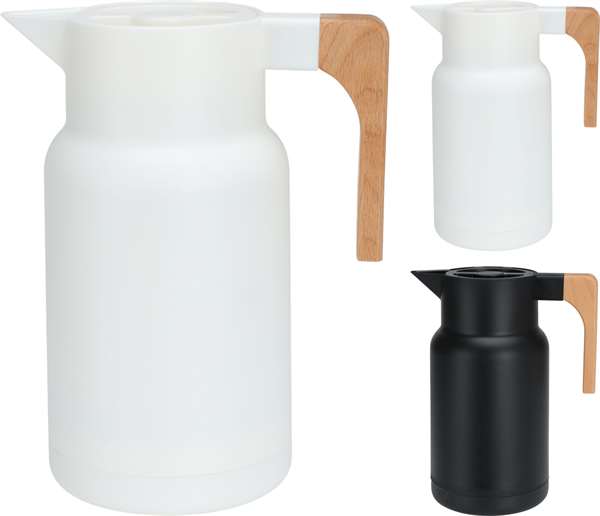 Termokanden, med håndtag i træ, en ideel beholder til varme drikke.