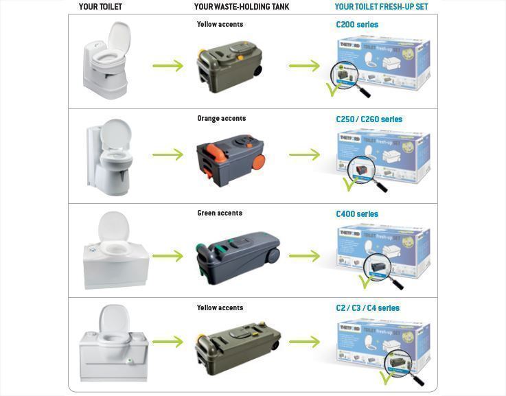 Skal man bruge højre eller venstre Thetford Fresh up toiletkitThetford  toilet C2, C3 og C4 bundtankDiverse toiletkit Thetford Fresh up