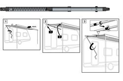 Komplet stormsikring til markiser og fortelte bl.a. Dorema - Fiamma og Thule Omnistoir.