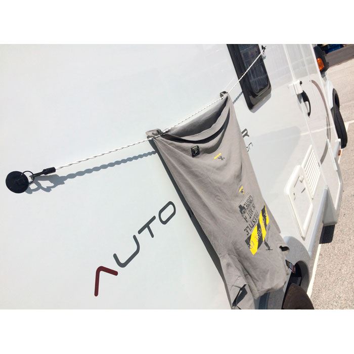 Den snoede tørresnor gør det muligt at hænge tøj op uden klemmer.