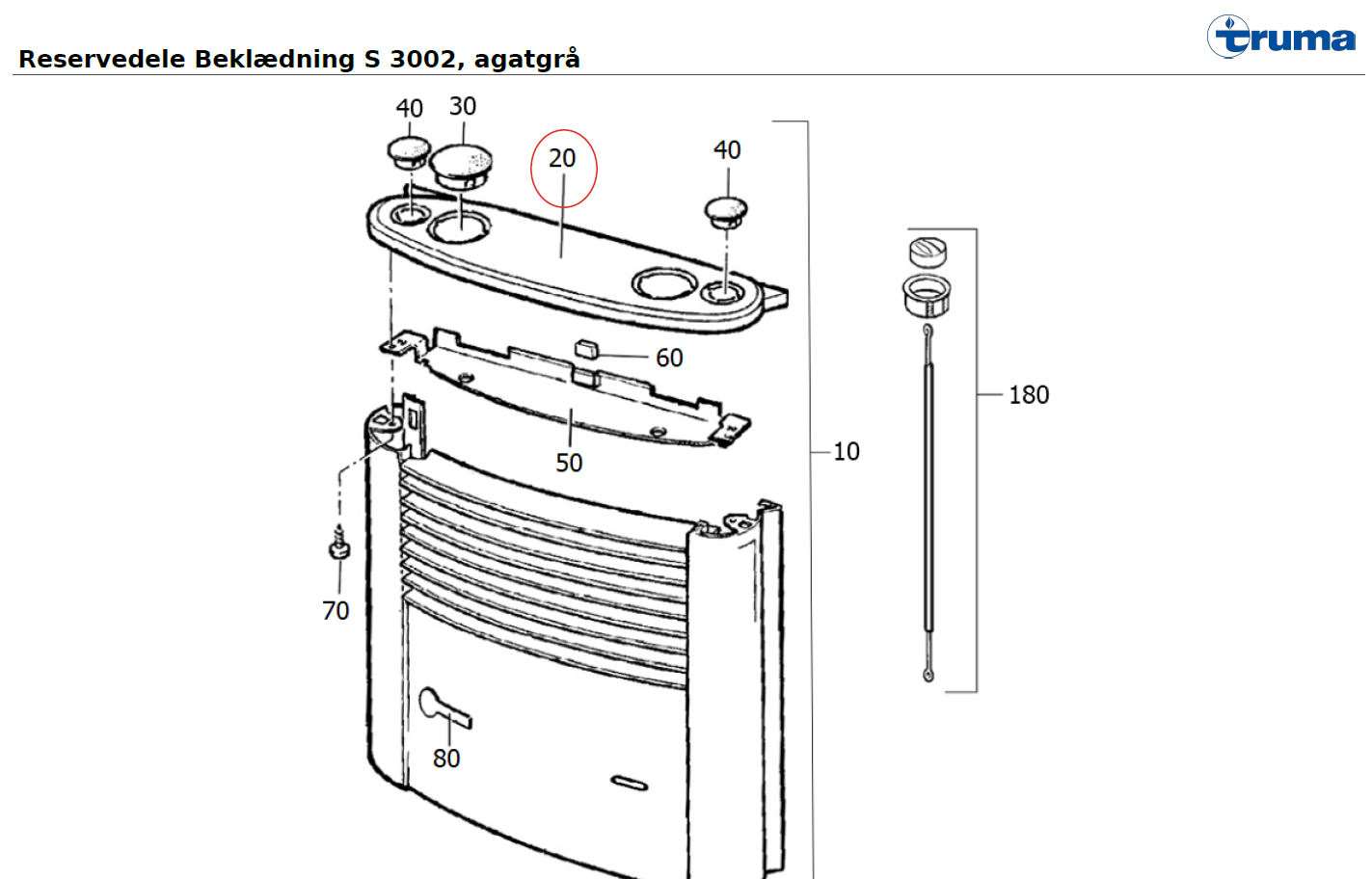 Topplade S3002 Truma Varmeovn, farve lysegrå