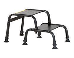 Enkelt trappetrin med skridsikker belægning udført i kunststof