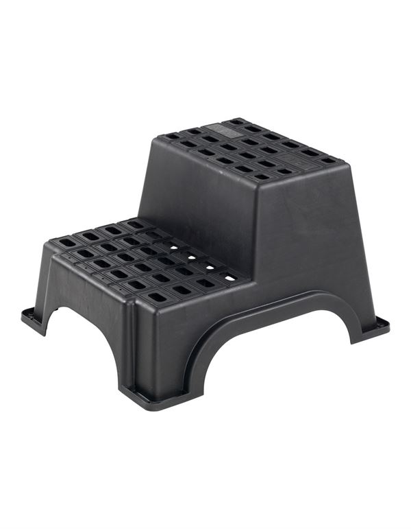 Trappetrin Dobbelt med stor trædeflade - trappen står stabilt på underlaget.