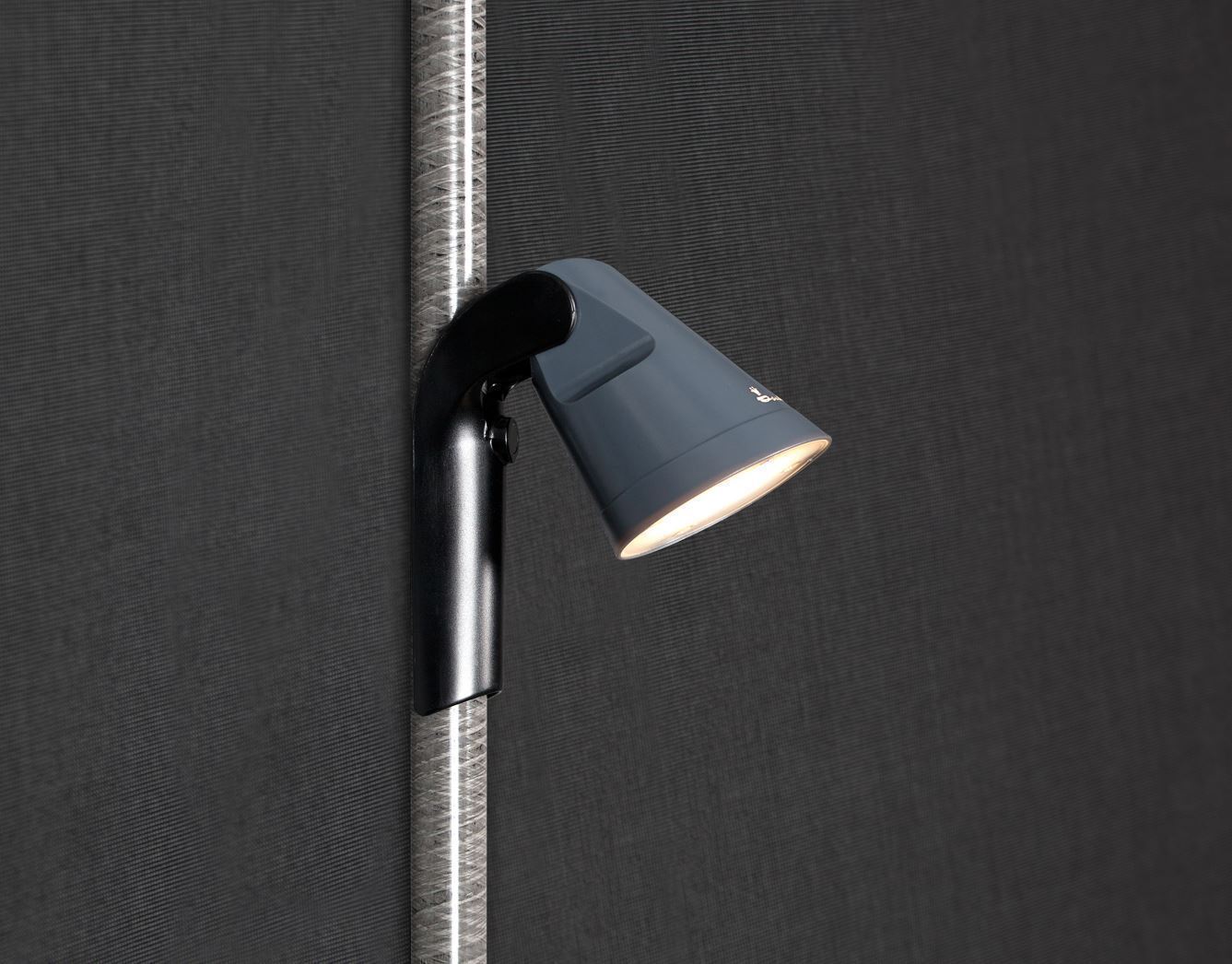 Denne alsidige lampe kan nemt placeres hvor som helst i forteltet takket være dens praktiske kliksystem, der passer til teltstænger med en diameter på 25-28 mm.
