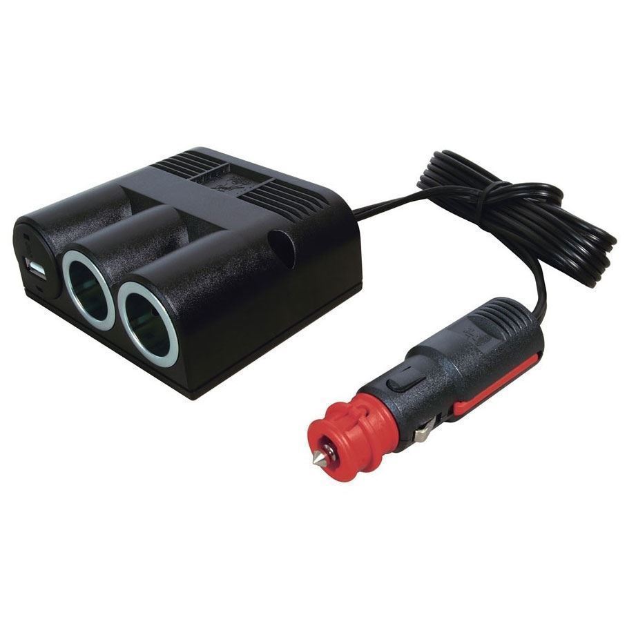 12 volt fordeler med tripplestik med 2 x 12 V og 1 x USB.