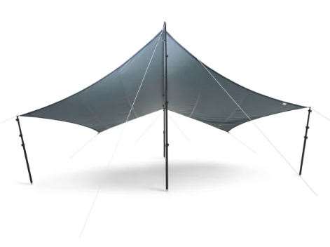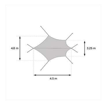 Sejlet leveres med stænger, pløkker og barduner og er nem at sætte op og pakke væk med den medfølgende opbevaringstaske