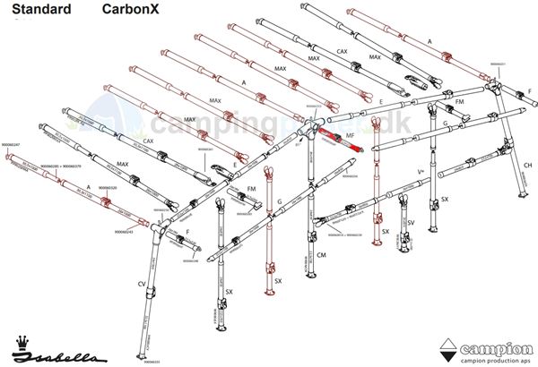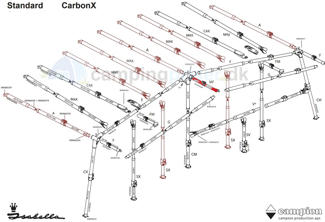 Isabella Udhængsstang midtfor til Isabella fortelt 250 - 300 cm - MF-stang - CarbonX
