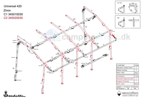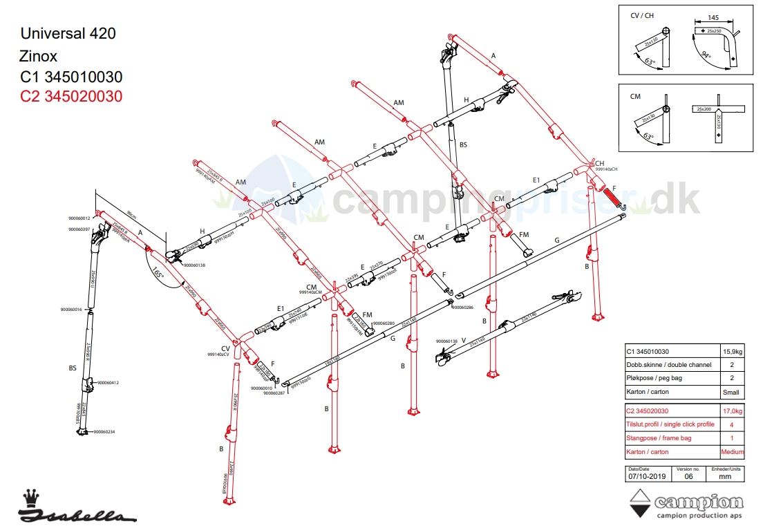 Isabella F-stang udhængsstang til Isabella Universal 360 og 420 i Zinox med T-Rex beslag