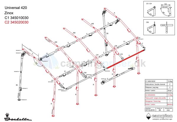 Isabella G-stang udhængsstang til Isabella Universal 420 i Zinox med T-Rex beslag
