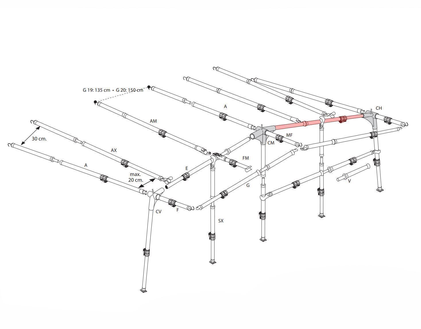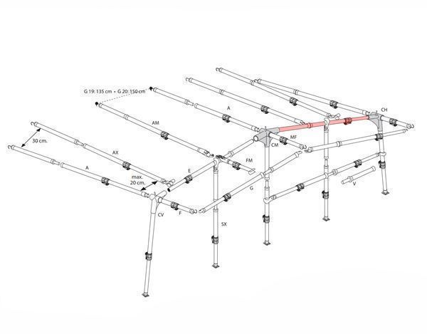 Isabella E-Stang i CabonX bruges på indersiden af fronten på Commodore, Ambassador og Capri forteltene