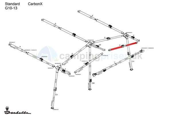 Isabella G-stang udhængsstang G10-13 Standard dybde 250 - 300  CarbonX til Isabella Capri - Ambassador samt Adria Action telt