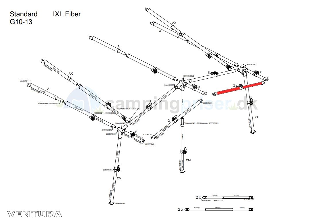 G-stang - udhængsstang Ventura fortelt Dybde 250 - 300 cm G10-13 i Fiber stel