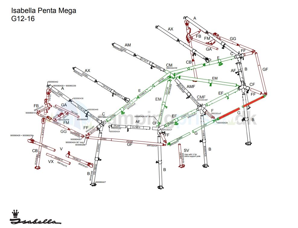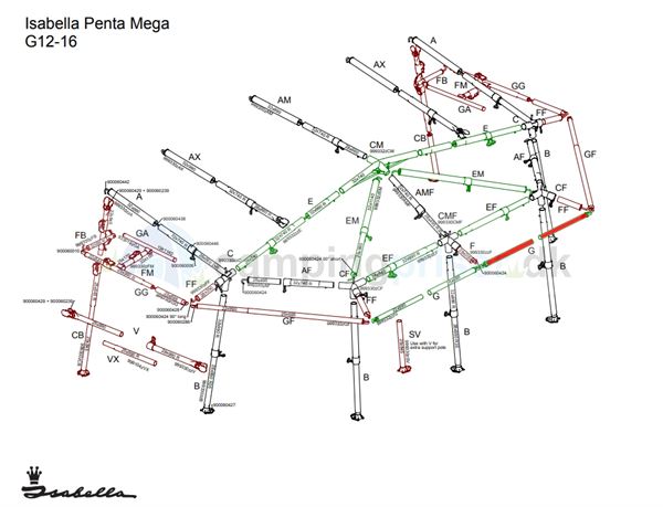 Isabella G-stang udhængsstang G12-16 til Isabella Penta i MegaFrame