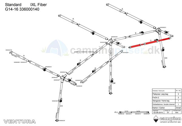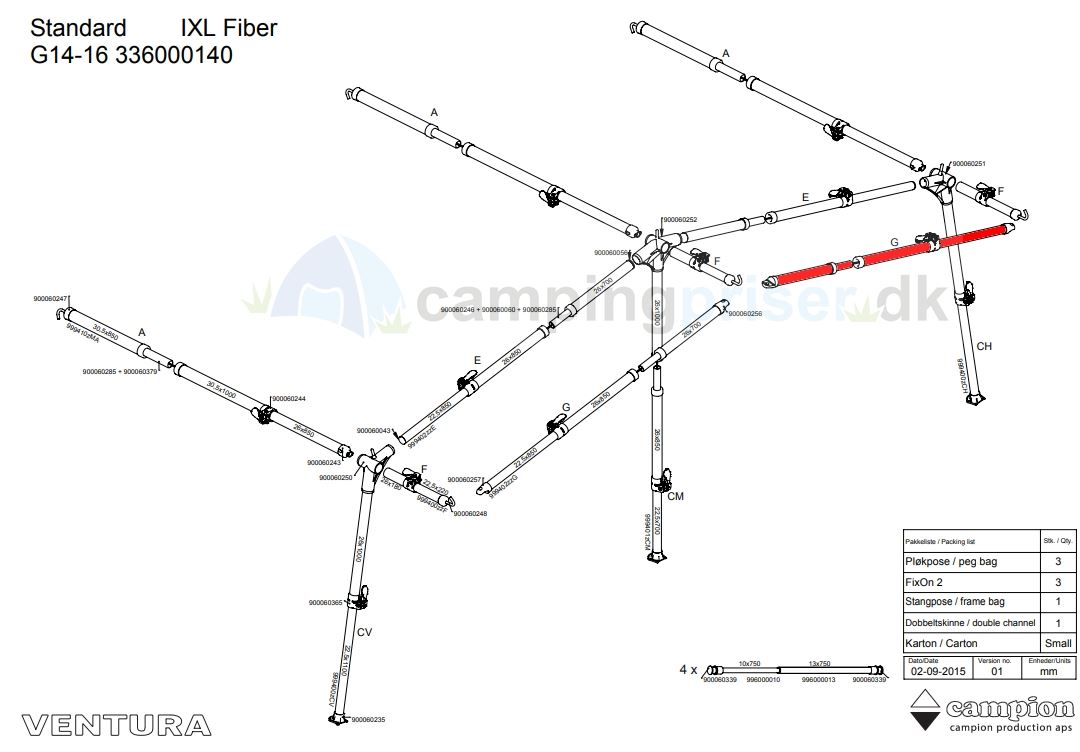 G-stang G14-16 udhængsstang til Ventura fortelt Dybde 250 - 300 cm  i fiber stel