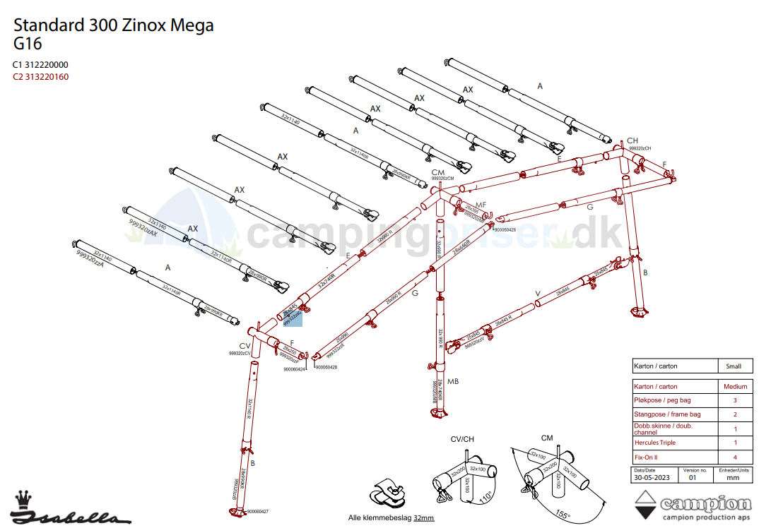 Isabella udhængsstang G-stang til str. G14-16 i MEGA stel (32 mm)