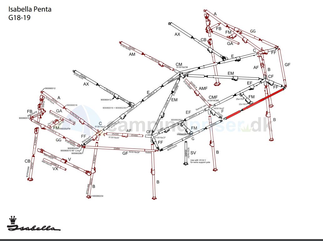 Isabella G-stang udhængsstang til Isabella Penta G18-19 i Zinox
