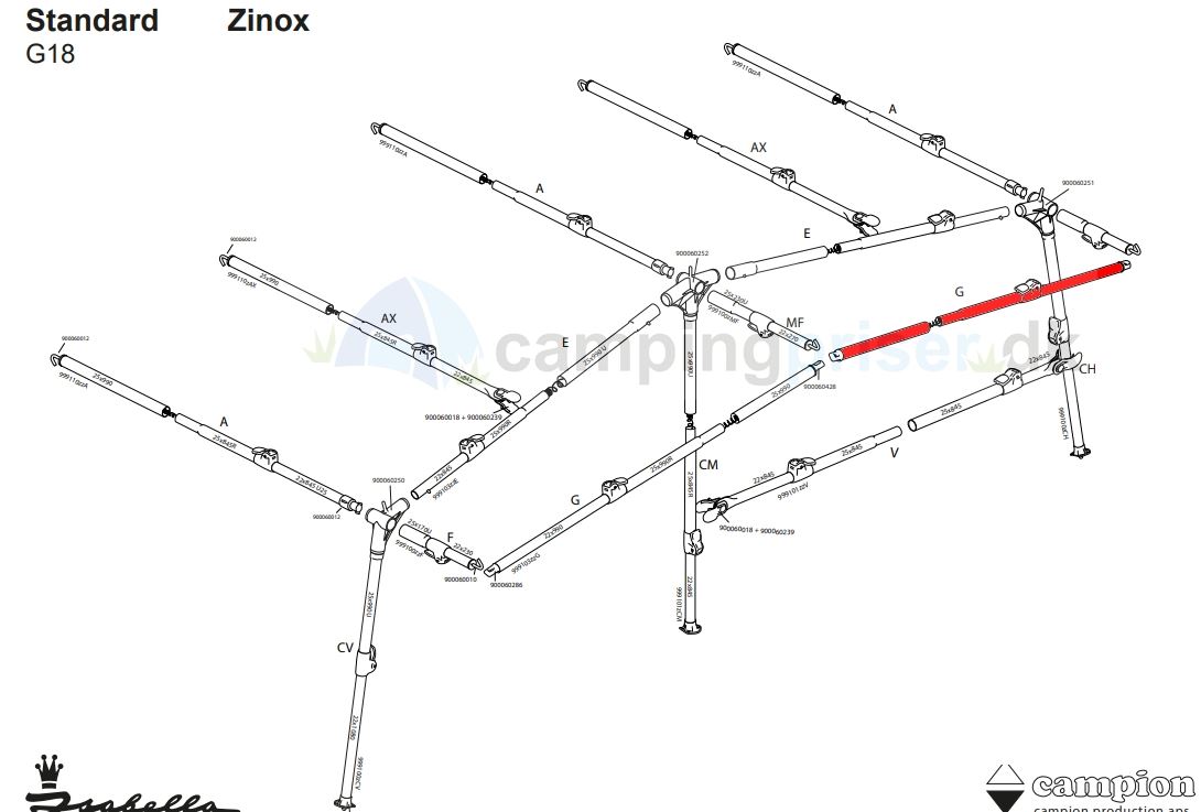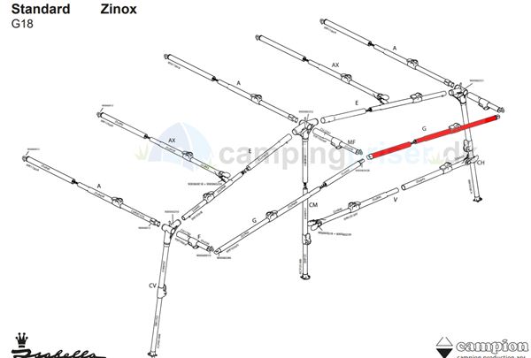 Udhængsstang G-stang G18  Isabella fortelt dybde 250 og 300 - T-Rex - beslag - Zinox