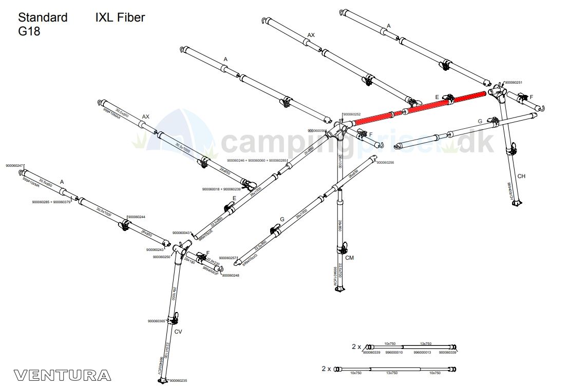 Isabella E-stang udhængsstang G18 til Ventura fortelt i IXL fiber
