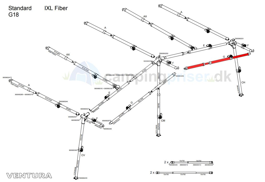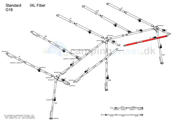 Udhængsstang G-stang til Ventura fortelt med dybde - 300 cm Fiber med Fixus beslag