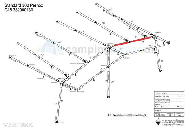 Udhængsstang E-stang Ventura fortelt - dybde 250 og 300 cm til str. G18 - Prenox (stål)