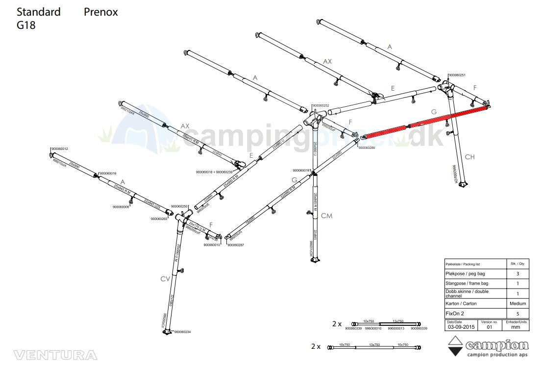Udhængsstang G-stang G18 Ventura fortelt dybde 250 og 300 cm - Prenox - stål