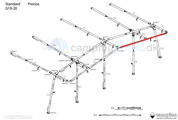 Udhængsstang - yderste G - stang - Ventura dybde 250 + 300 cm - prenox - stål
