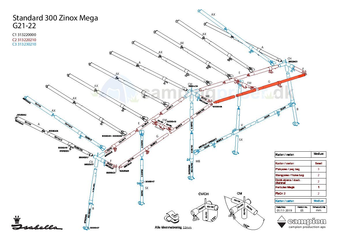 Isabella Udhængsstang G21-22 fortelt med dybde på 3 meter - Mega G stang