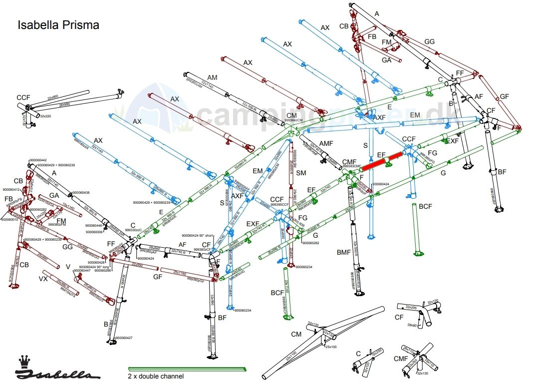 Isabella EF-stang udhængsstang G22-23  til Isabella Prisma i MegaFrame