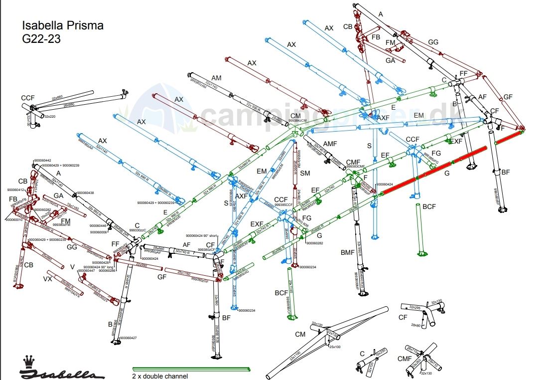 Isabella G-stang udhængsstang G22-23 til Isabella Prisma i MegaFrame
