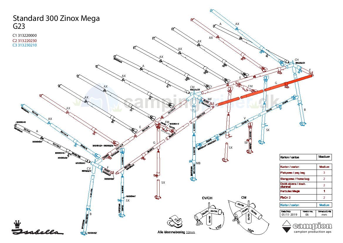 Isabella G-stang udhængsstang G23 til Isabella Forum samt fortelt med dybde på 3 meter i MegaFrame