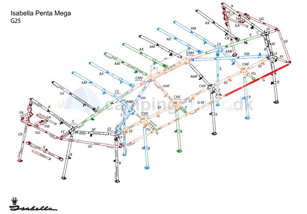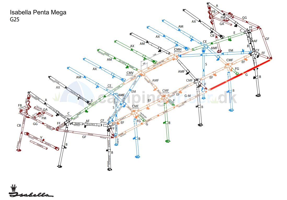 Isabella G-stang udhængsstang G25 til Isabella Penta i MegaFrame