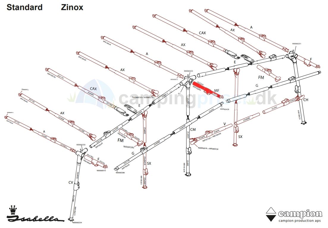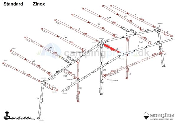 Isabella udhængsstang - kort til Isabella fortelt med dybde 250 - 300 cm -  MF-stang T-Rex  beslag Zinox