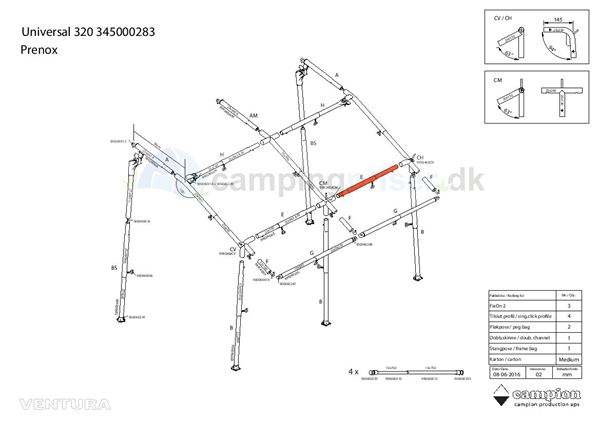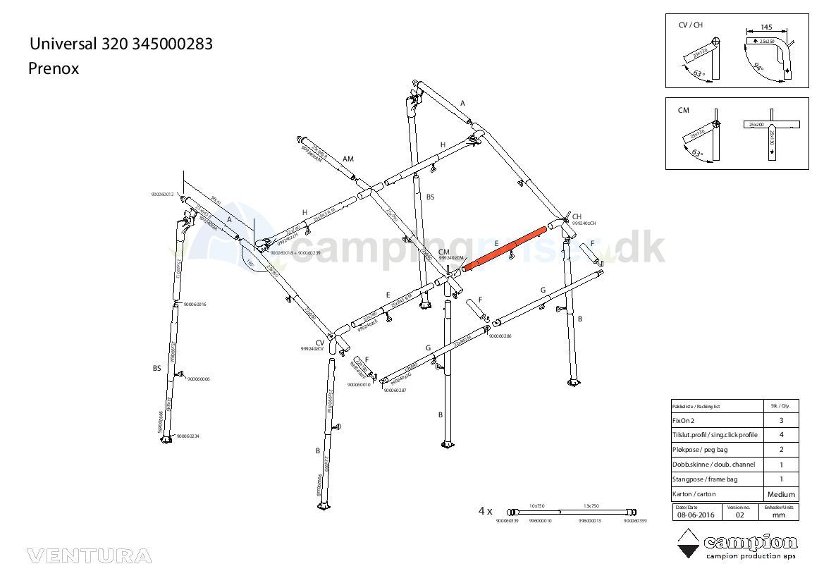 Udhængsstang til deltelt Universal 320 i Prenox stel
