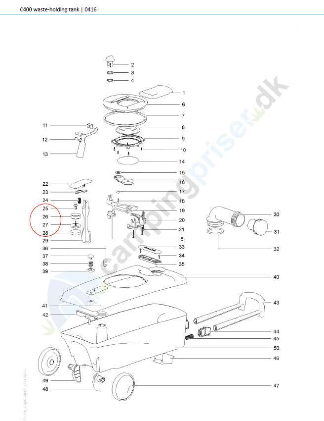Udluftningsventil plus flyder og pakning til Thetford toilet C400 bundtank.