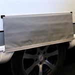 Hjulafdækningen fås i både 150 cm og 75 cm i bredden og kan justeres trinløst i højden. Monter skinnen på siden af campingvognen med dobbeltklæbende tape. Herefter sættes afdækningen i skinnen og hjulafdækningen er monteret. Skinnen kan afkortes med en nedstryger. Skinnen er fremstillet i aluminium med endepropper i sort plast og afdækningen i gråt PVC.