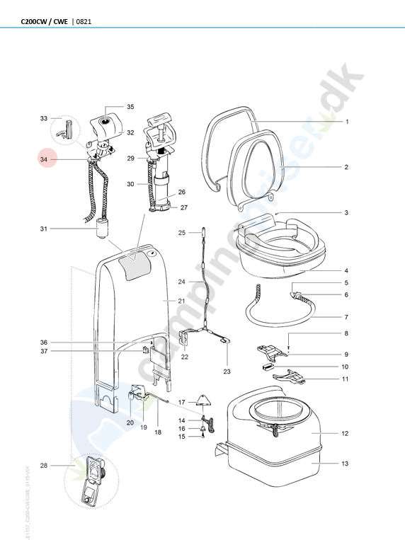 Se 1. billede Thetford toilet C200 - del 34 - mærket med rød