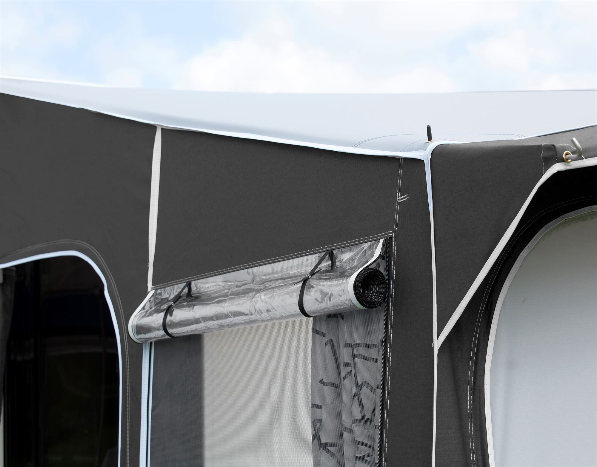 Deltetet fra Ventura model Cadet er et lille fortelt i akryl, der passer til de fleste campingvogne.