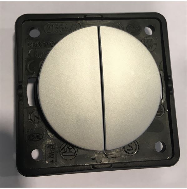 Dobbelt Afbryder med en vippekontakt i sølv.