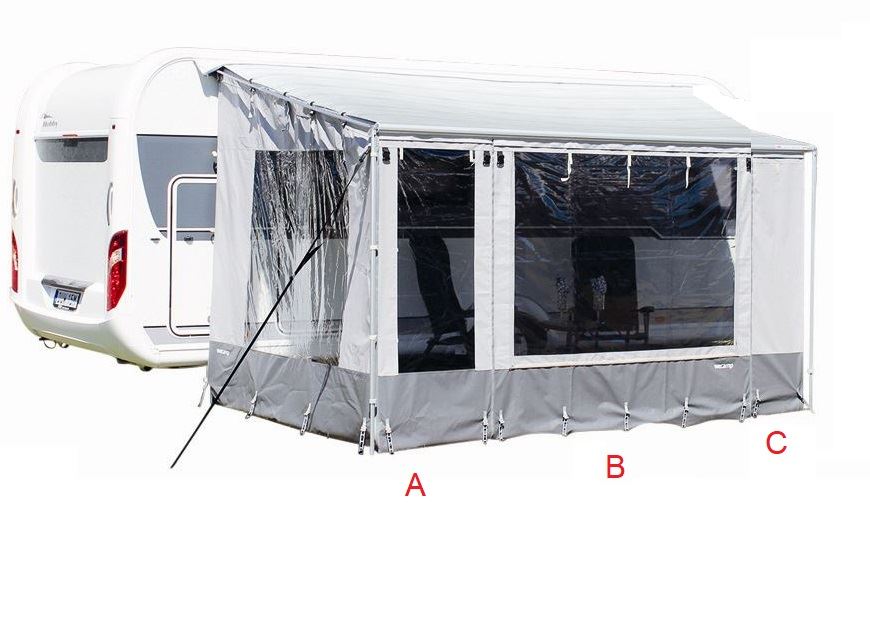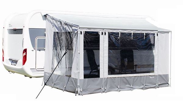 WeCamp front med lynlås til Fiamma Caravanstore og Caravanstore XL  posemarkise med vindue og græskant.