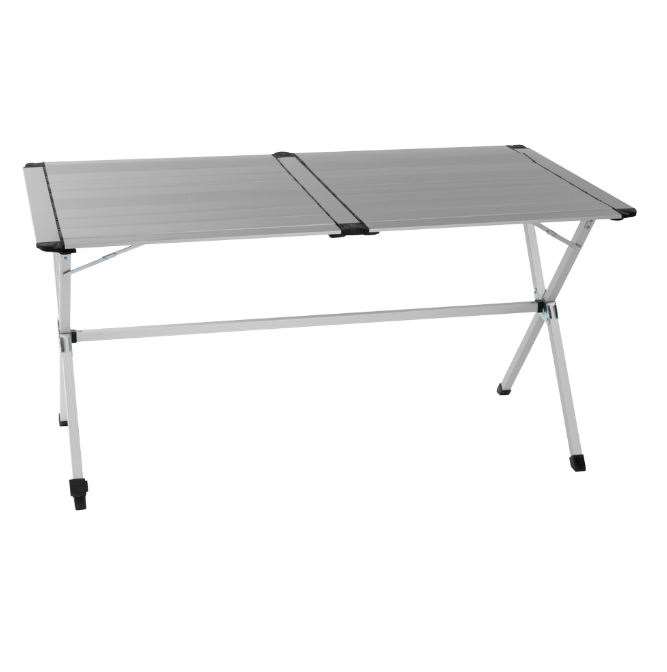Lamelbord med 2 delt bordplade og justerbart ben. Leveres inkl. tværstang og opbevaringspose.