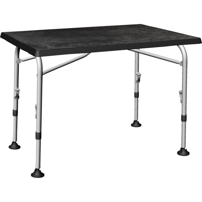 Alle 4 ben kan indstilles i højden vha. snaplås. Bordet er vejrbestandigt bordpladen meget slidstærkt.
